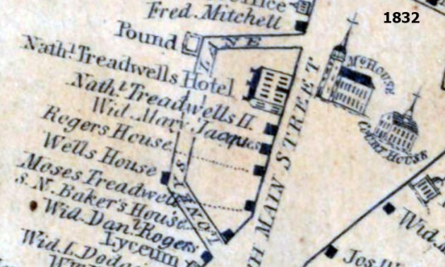 In 1719, a large log almshouse was constructed “near the Town Pound on Loney’s Lane.” In the 1832 village map, the enclosed animal pound was located at the corner of Warren St. and Loney’s Lane.