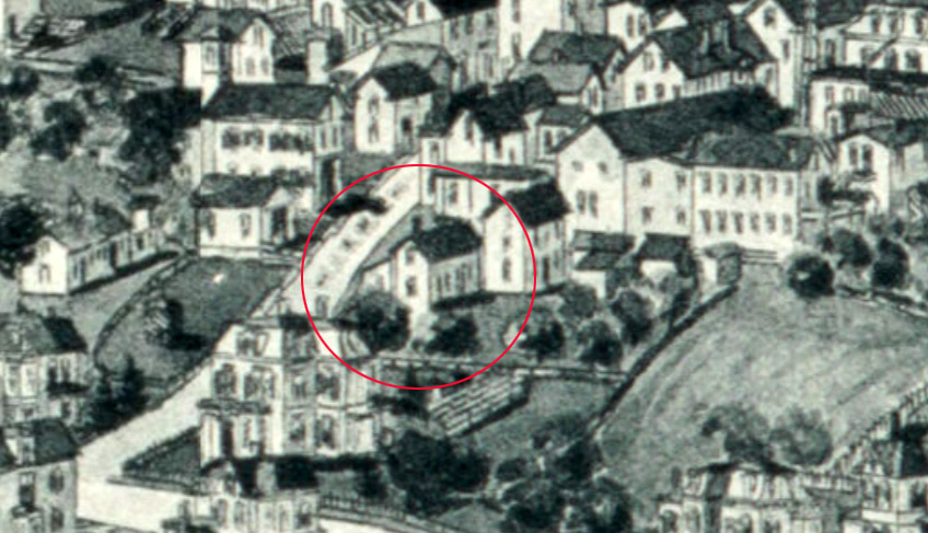The house is shown in the 1892 Birdseye map, slightly farther back on the lot and facing the opposite direction. After Manning Street was constructed, Warren Street was extended, and the old Town Pound was removed. The small house was moved to Warren Street after the death of Louise Wells in 1893.