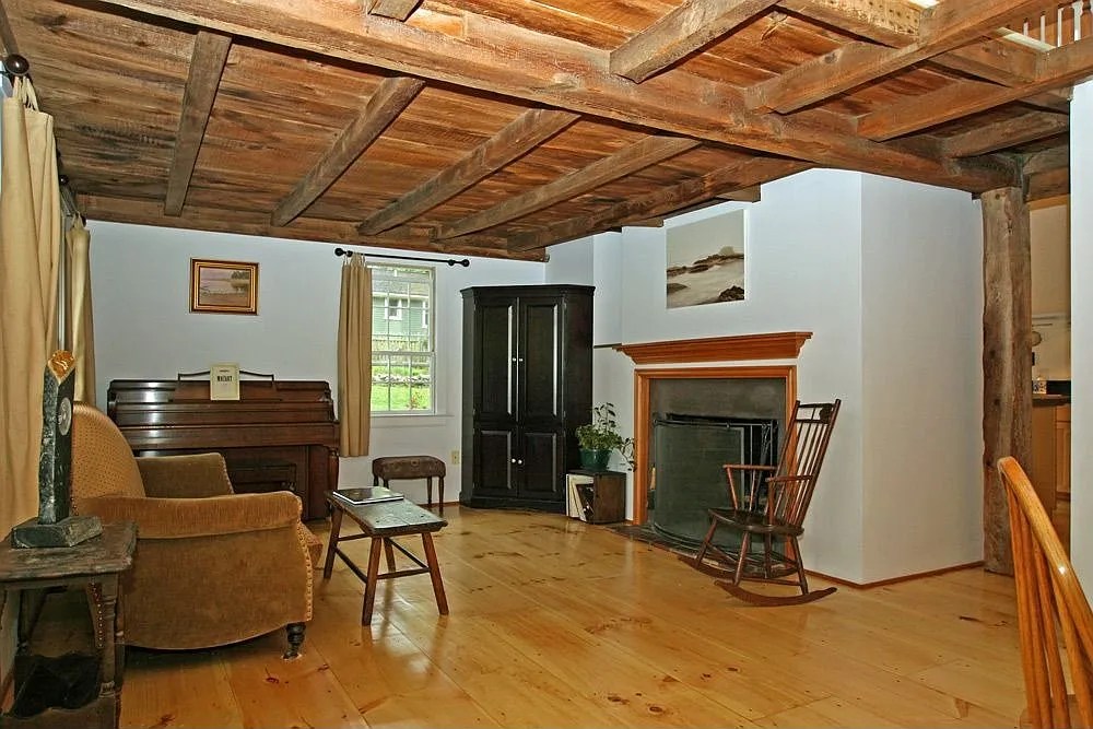 The small “broken back” cottage at 12 Warren Street in Ipswich is listed on the town assessors’ site as having been built in 1700, but the house lacks First Period features, indicating a later date. It was moved a short distance to this location, which had been the site of the town pound in the 18th and 19th centuries. This house is not shown in the 1832 map, and first appears in the 1856 map in its original location, owned by “S. Wells.”