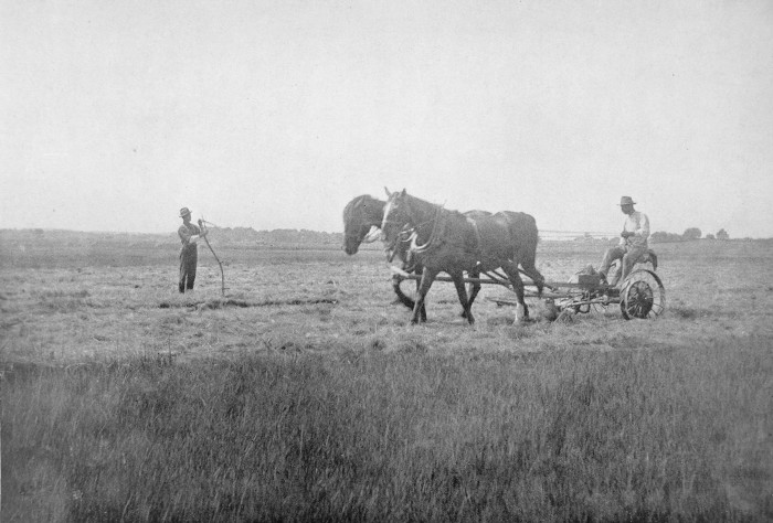 “In cutting the grass, which is done in Au­gust at periods of a low run of tides, mowing machines are used, except in the lower, softer places where the scythes are swung.”