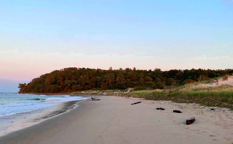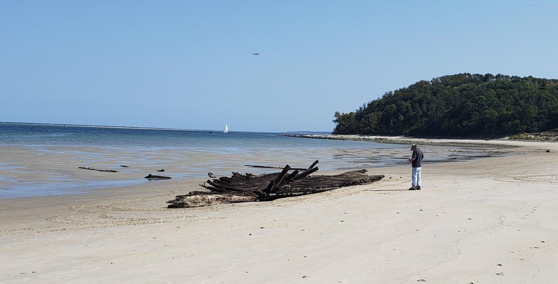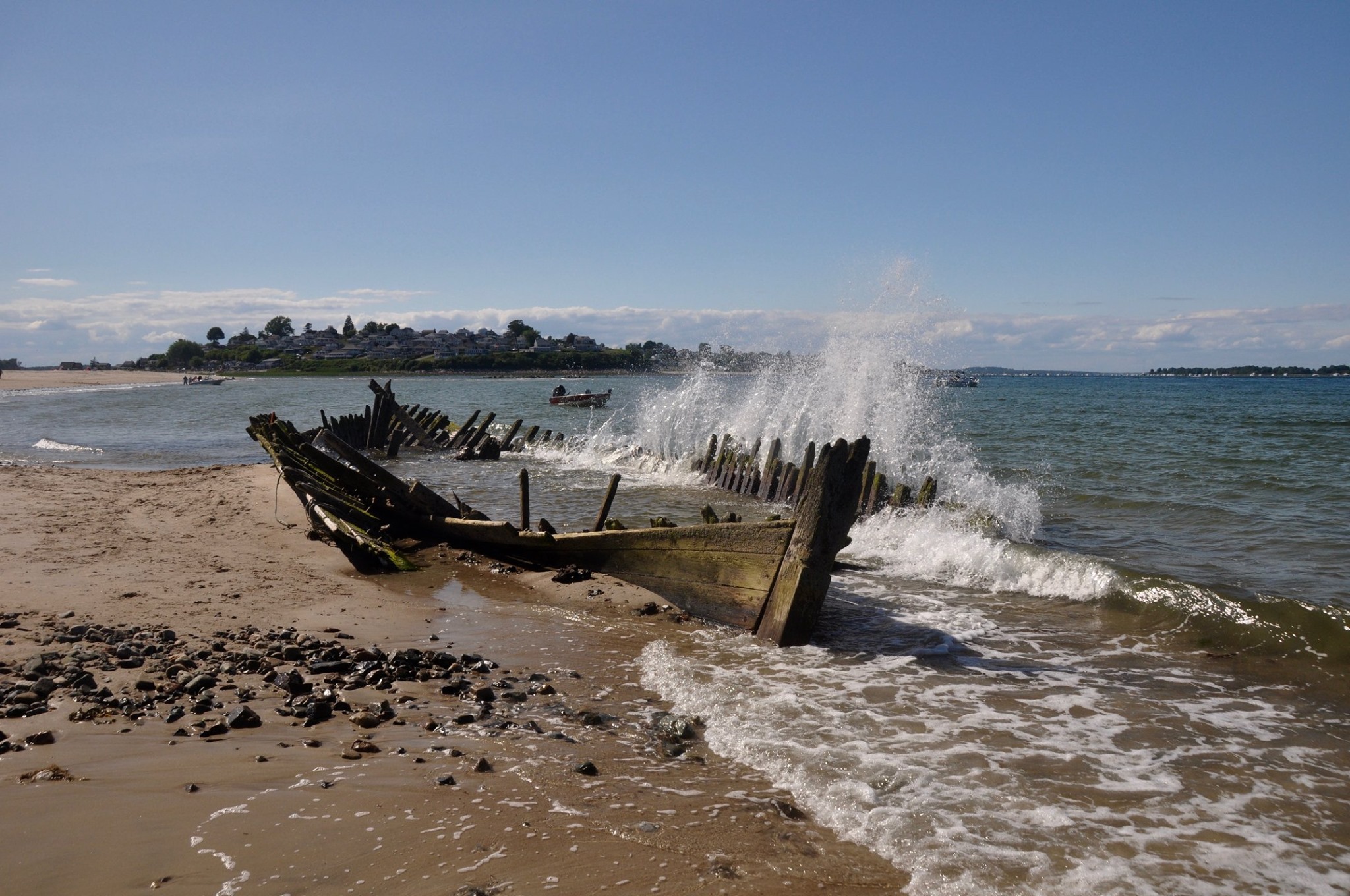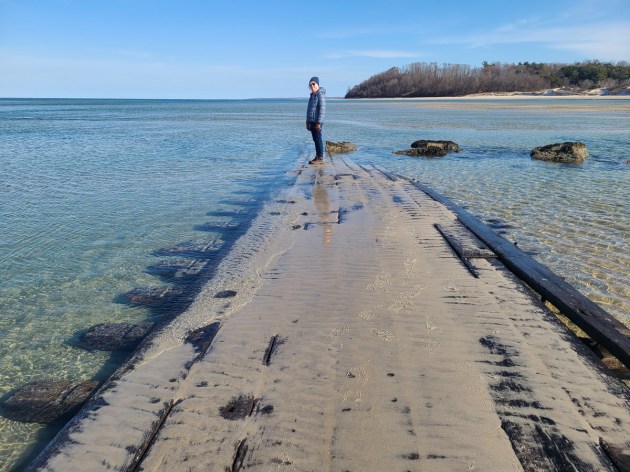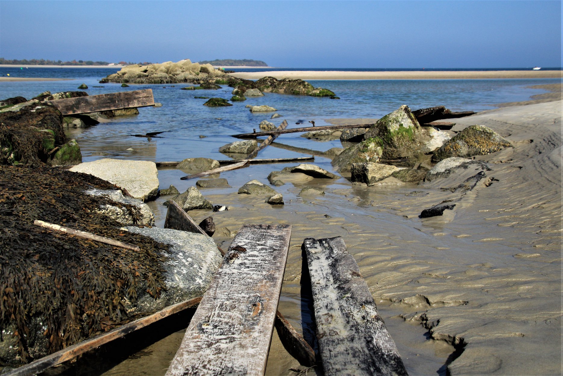 The stern or bow of another ship, possibly the Edward S. Evelyth, lies nearby at the water’s edge, covered with green moss. Once at very low tide, I was able to wade into the water and observe the faint outline of a ship’s skeleton.