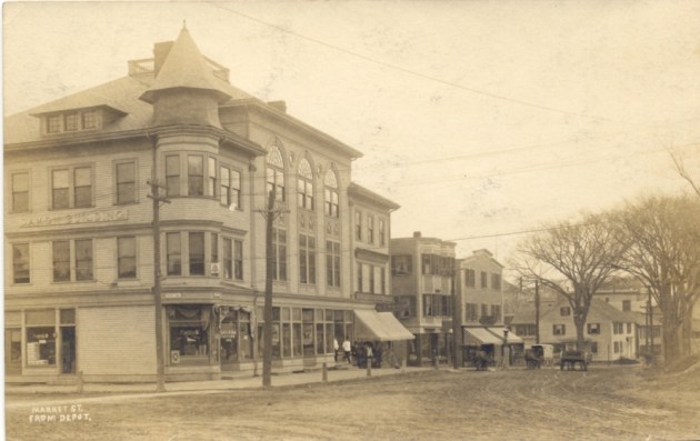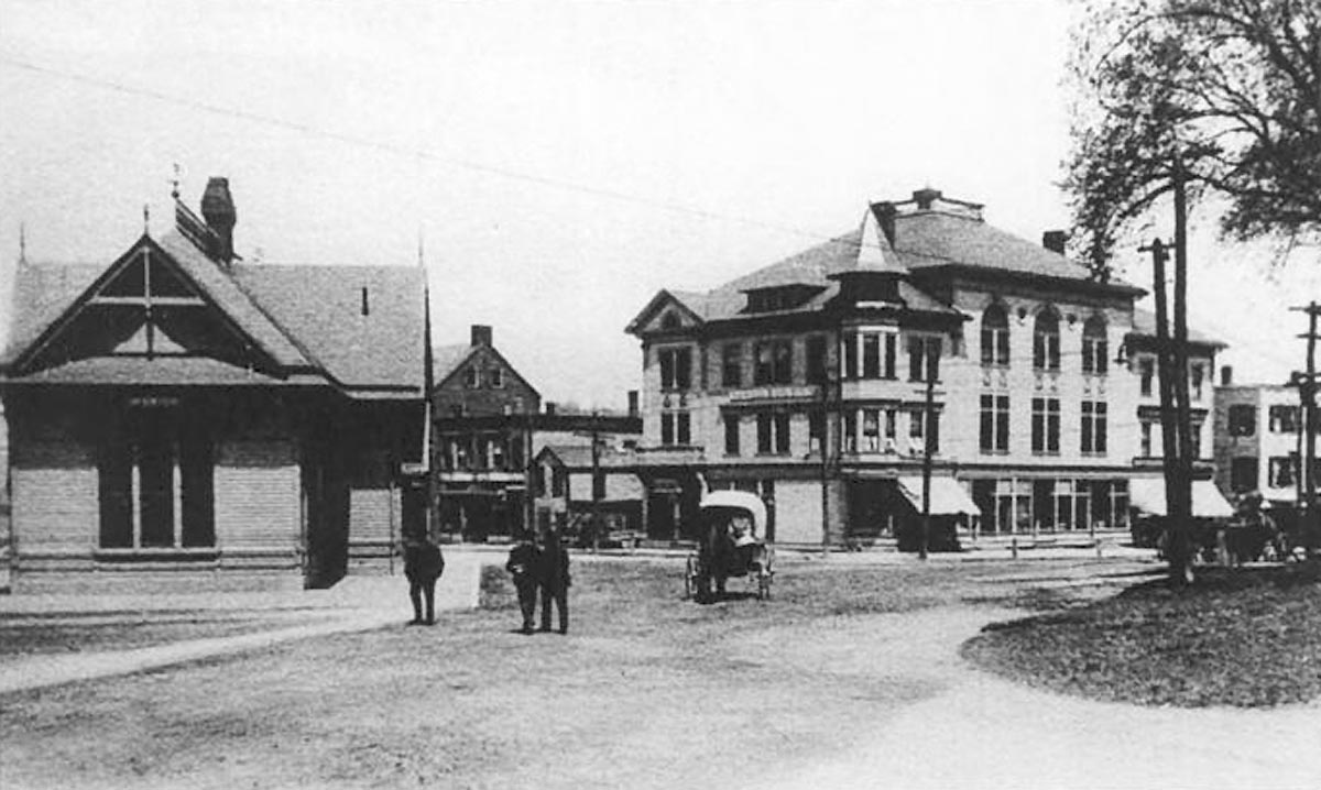 This building stood at Depot Square for a few decades before the current institution for Savings Bank was built on the corner.