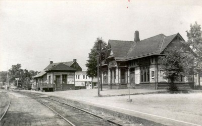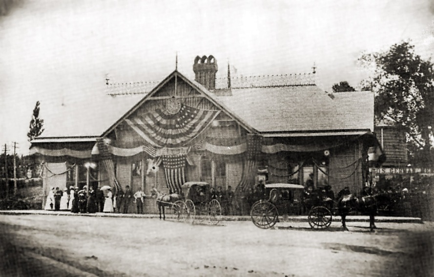 Front view of the Ipswich Depot in 1884 during the 250th anniversary celebration of the founding of Ipswich, courtesy of Randy Maggelet