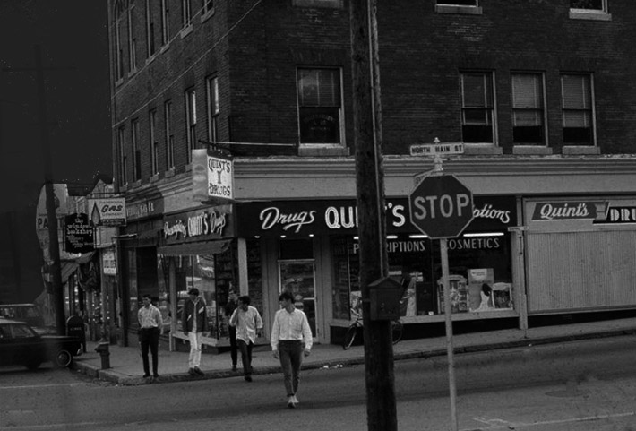 Back down Brown Square, we can cut through the alley over Farley Brook behind the laundry. DeMario’s Jenny Station’s kept going after Orlando died. I’ve heard it may have been bought by Cumberland Farms. Captain Harry’s Seafood Restaurant is next and then the Tailor Shop. Ed Rauscher and Teddy LeMieux were here yesterday morning for a squabble between the neighbors. It ended peacefully when Eddie told them it was Sunday morning for Crissakes, and why didn’t they just go back inside and finish reading the goddamn paper? Badge One is a master of getting right to the point.