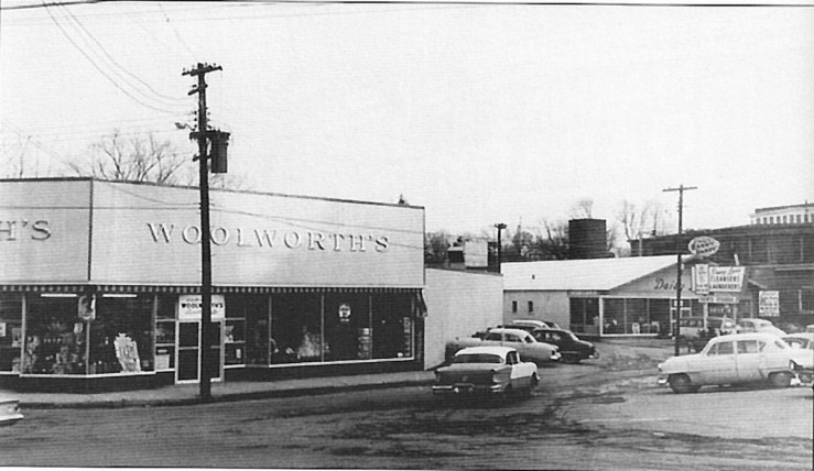 On Market Street, I check the east side first. The Cut Hut Barber Shop, the hairdresser, Co-Op Bank and Ipswich News. Further along; Sullivan Insurance, Ross’s Law Office, Tetrualt Jewelers and then down the alley to check the back doors. Up the rickety stairs to the rear of the Ipswich News. Jump up here for a second and take a look at this. The sheltered platform is stuffed with unsold newspapers and magazines, old display cases, cigar boxes and a million other things that no one wants. It connects to the back room where the real treasures are located. It’s always open like this and it’s a wonder that there hasn’t been a fire here. Careful climbing down, now let’s make the rest of the block around Woolworth’s, On Time Travel, Maybe Its Here and Ciolek’s Hardware. Sometimes Mr. Manning will be working late in the Five and Ten and give me a stiff nod of acknowledgement. I gotta say, the guy puts in the hours.