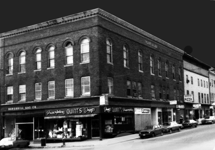 Strolling back toward Depot Square, I shine my light into the Haverhill Gas Company. The water heaters and furnaces on display stand like sentries in the darkened office. Next comes the Window Book Shop and then the new Hill’s Clothing Store. The original was destroyed in the 1980 fire that also took out the Sherman Williams Paint store. Ed Walsh worked the fire, and told me that cans of exploding paint flew across Market Street like Cruise Missiles. Taffy and Wendell persevered though and rebuilt the block into something shining and new and more popular then ever. At Christmastime, the press of people to get in is so heavy that Taffy hires us for crowd control. It’s a good gig and fun too. You work until the store closes and then escort Taffy to the bank at the end of the night. Confidentially, there’s a lot of cash in those Levi’s.