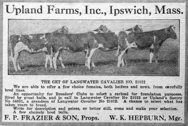 Frank Frazier continued to raise prize-winning Guernsey cows, but it was the end of an era. He began to sell off houses and portions of land. Orrin Parsons purchased much of the property. He was interested only in the dairy. (Upland Farms bottle caps can still be purchased as memorabilia on EBay).
