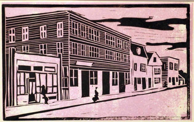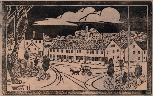Block prints from the 1950 IHS calendar: Old Time Ipswich