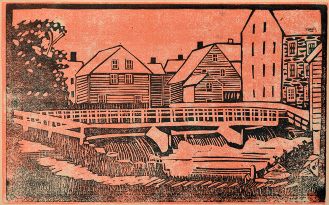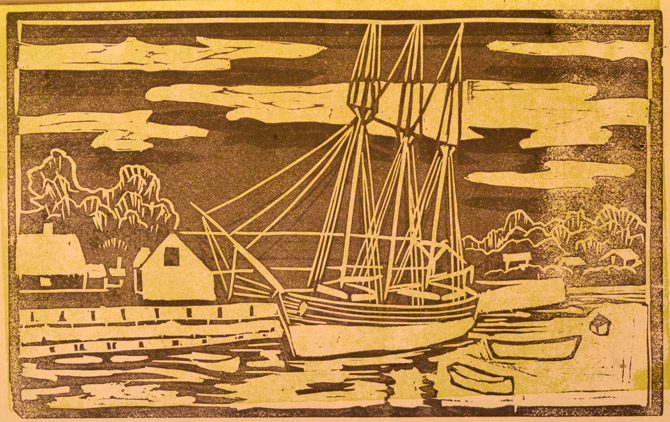 Block prints from the 1950 IHS calendar: Old Time Ipswich
