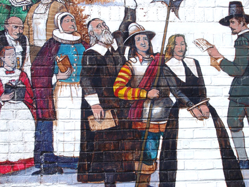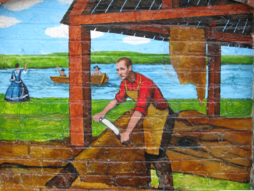 The captions below are from Alan Pearsall‘s American Town: The History of Ipswich Massachusetts based on his studies in preparation for each aspect of the Ipswich mural.
