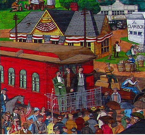 In 1912, President Teddy Roosevelt’s “whistle-stop” presidential campaign tour passed through Ipswich. He delivered a speech in front of the train station to a local crowd.