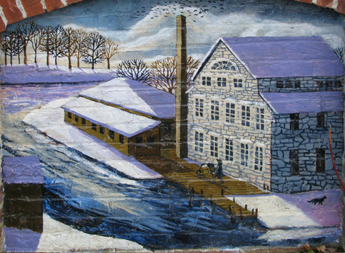 In 2005 EBSCO Publishing commissioned artist Alan Pearsall to paint a 2,700-square-foot mural on one of the old mill buildings occupied by the company in Ipswich. The mural is the centerpiece of the town’s Riverwalk. Alan based the mural on the history of Ipswich from the time of its settling to the current day, viewed chronologically from left to right.