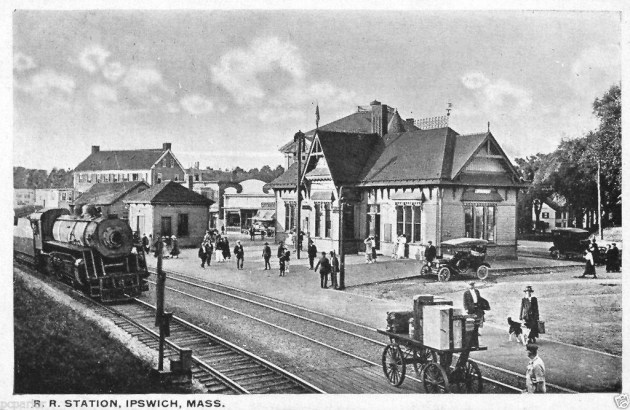 Jack Dziadul at Ipswich Hobbies produces 1/87 scale structures for model railroads. Three of his model kits are based on Boston and Maine Railroad structures in Ipswich. You will recognize the models below that represent 1) the Section House that used to be along the tracks by Topsfield Road across from the present MBTA parking lot, 2) the crossing shanty that is now on display at the Ipswich Museum at 54 South Main Street, and 3) the REA Building/baggage shed that is now behind the Hegarty residence at 82 High Street.