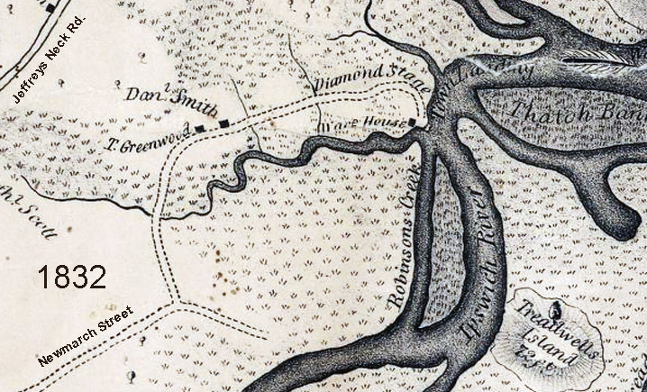 On January 26, 1634, a tillage lot of six acres was granted to John Manning on a “neck of land” along today’s Newmarch Street. Three years later he was granted a house lot “bounded on the west by a highway leading to the river, and at the South by a houselot of Thomas Hardy on the crossway leading toward the Mill.” The small peninsula was commonly called “Manning’s Neck,” into the Twentieth Century.