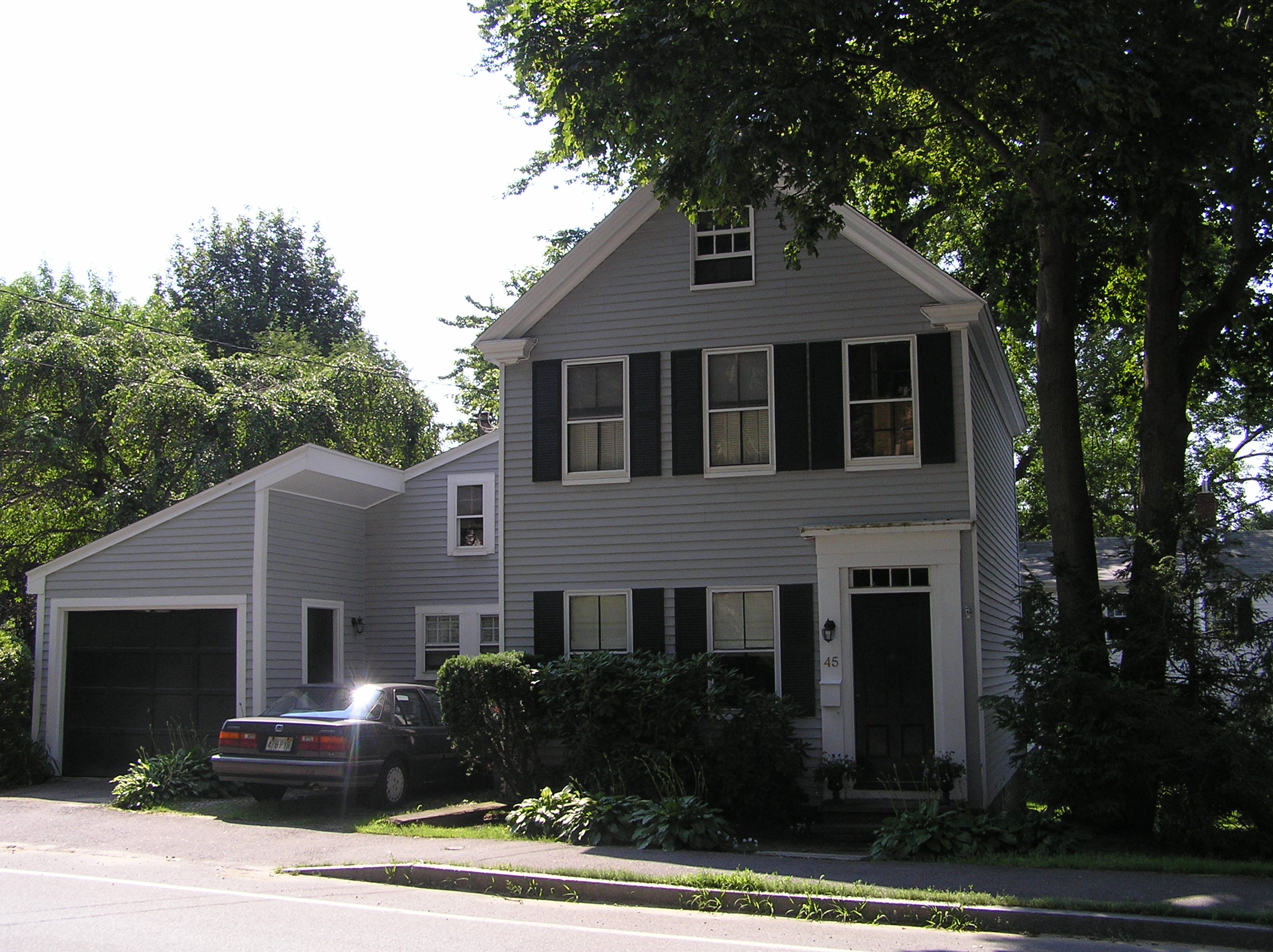45 East Street: The next lot, eastward, was sold by Josiah Caldwell to J. H. Varrell on July 28, 1847 (Ipswich Deeds, 400: 64)