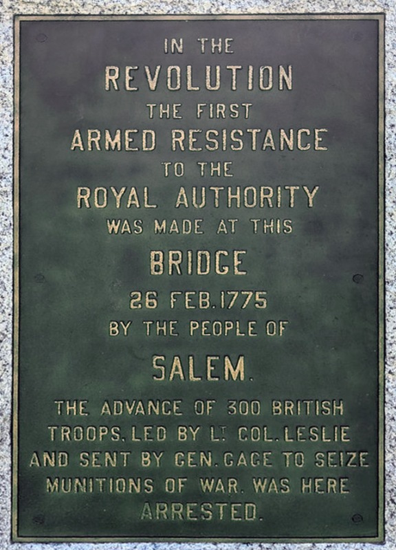 Plaque commemorating Leslie’s Retreat at the Old North Bridge in Salem