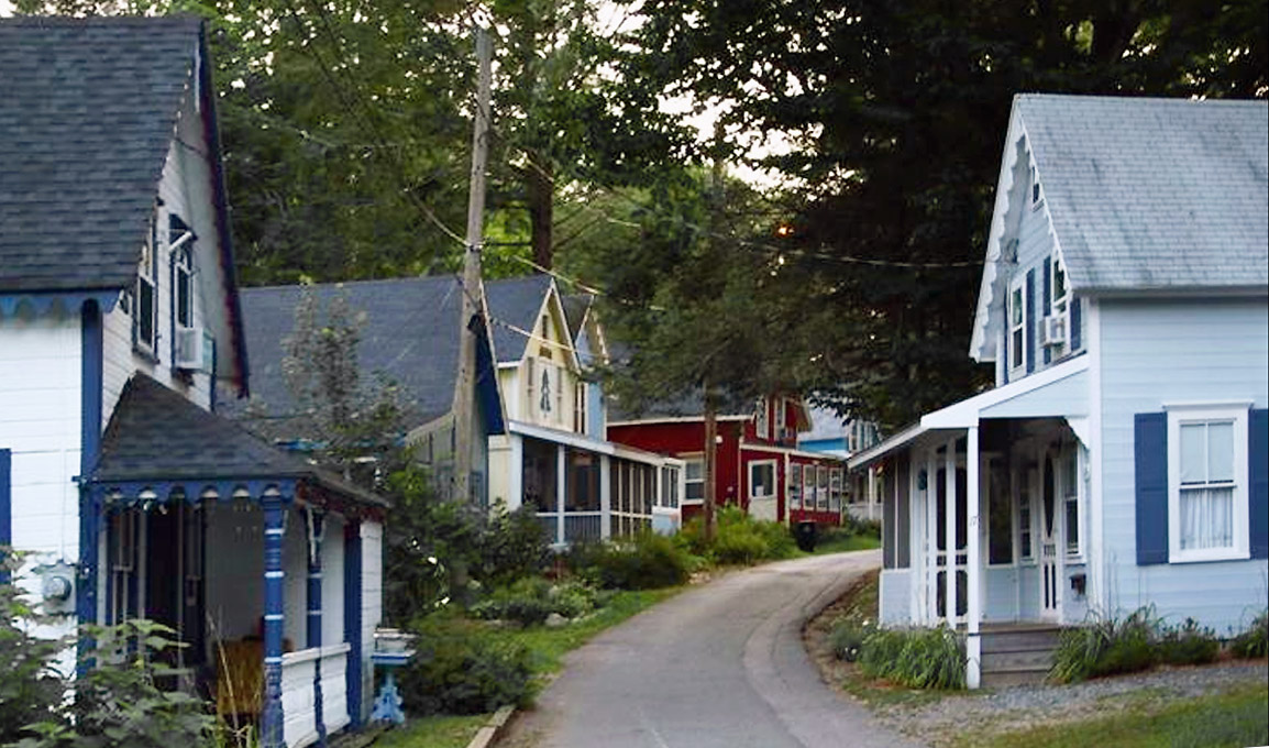 At its height in the late 1800s, trains and trolleys arrived with visitors up to a dozen times a day. As Society moved away from the religious fervency of the 18th and 19th centuries, camp meeting declined. A fire in 1927 destroyed many of the buildings, but the community continues to this day. The pulpit, tabernacle, library, dining hall, baker and over 100 cottages still stand.