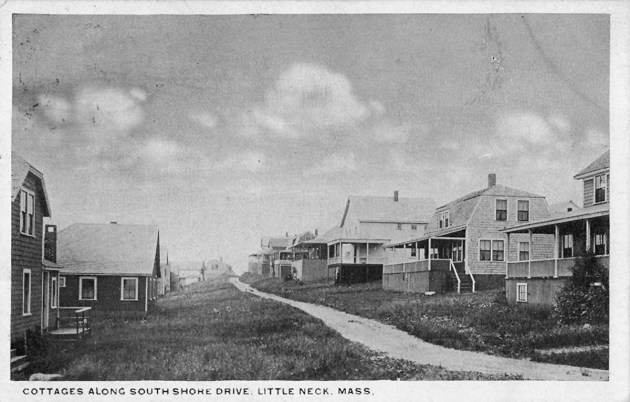Water’s history continues, “As the summer settlement of Little Neck increased in size and attraction, there was a corresponding increase in the volume of travel by cottagers and others over Jeffrey’s Neck. The Proprietors of Jeffrey’s obstructed this approach to Little Neck by creating a fence and digging a ditch across the narrow isthmus near Little Neck, making it impossible for any wheeled vehicle to pass.” A court case that went all the way up to the Supreme Court ruled in 1899 that there was a right of way across Jeffrey’s Neck to Little Neck. Unfortunately, the judgment did not determine where the way was.