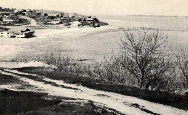 A long narrow pier running from Sandy Beach contained a row of outhouses which was the only “plumbing” available. They, and the wells, were abandoned about 1920 when a water line was laid across the cove to serve the Little Neck residents. Although now replaced with a different line, that original water service can still be seen at low tide.