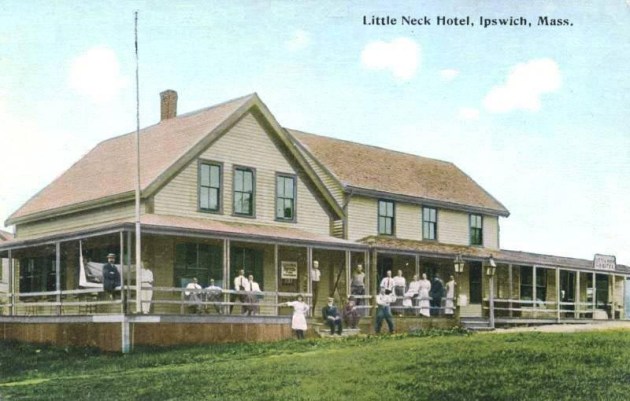This short article in a 1993 Ipswich Chronicle entitled “Ipswich – 100 Years Ago” sets the stage for the history of that longtime landmark, the Little Neck Hotel – part of which is still standing.