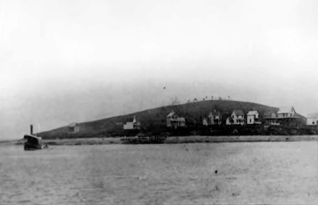 In 1750, a wharf on the westerly corner of Little Neck and a warehouse on the uplands was constructed which “suggests that the trade in fish must have been large and important.” Waters concluded his 1912 history with the following: “All business of this kind ceased many years ago. Fifty years ago, a solitary building used for the storage of porgies was the only frame structure on the Neck. The white tents of occasional camping parties skirted the slope of the hill near Stony Point and about the well, and as the great natural beauty of the spot and its easy access by the river came to be appreciated, a few cheap houses were built near the rocky beach at the foot of the Hill.