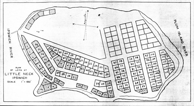 For the early history of Little Neck itself, one can turn to two publications prepared for the Ipswich Historical Society by Thomas Franklin Waters. From his Volume II, excerpts of interest about Little Neck we learn: