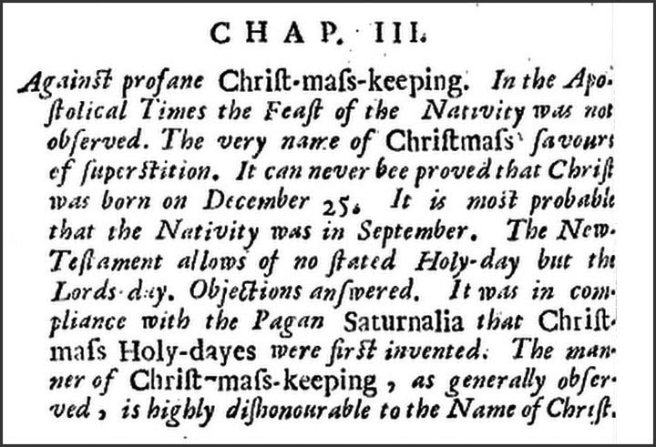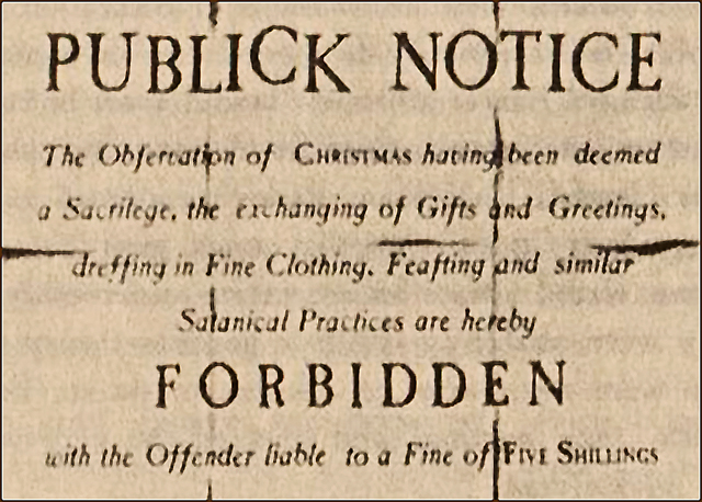 “Forasmuch as the feast of the Nativity of Christ, Easter, Whitsuntide, and other festivals, commonly called holy days, have been heretofore superstitiously used and observed; be it ordained, that the said feasts, and all other festivals, commonly called holy days, be no longer observed as festivals; any law, statute, custom, constitution, or canon, to the contrary in anywise notwithstanding.”