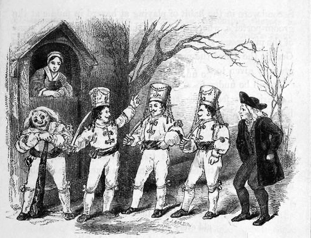 European settlers in many of the American colonies celebrated not only Christmas Day but most of December with revelry. Virginia settlers celebrated the harvest and opened their homes to all Yuletide visitors. In Boston, the upper and middle class would have none of it, but groups of working men derided as “Anticks” would don disguises and go door-to-door demanding money to perform crude skits, all the while drinking the unfortunate hosts’ wassail and beer. In Britain and Ireland, they were called “mummers.” It was trick or treat at Christmas, and it was best to give them some money and suffer through the “performance.”