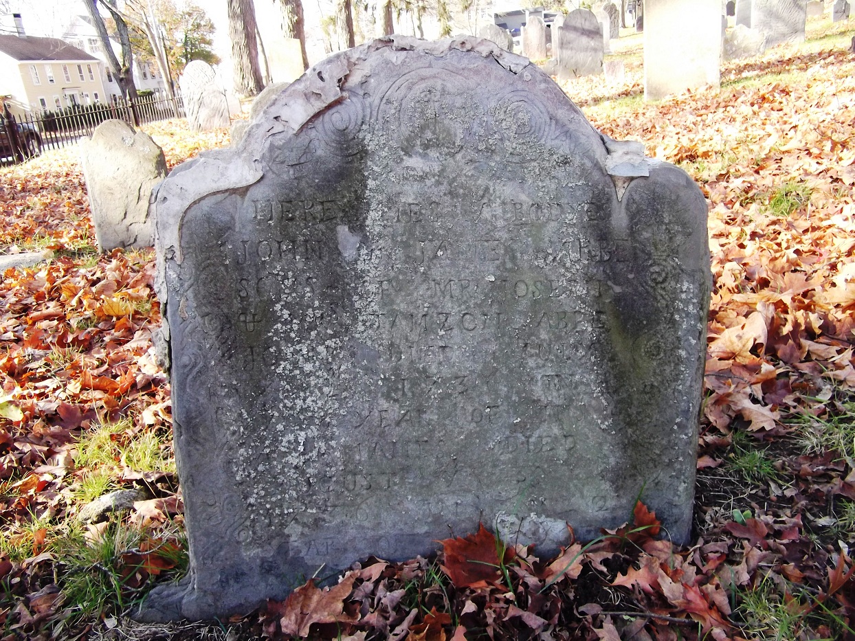 "Here lies ye bodies of John and James Abbe, sons of Mr. Joseph and Mrs. Tamzon Abbee. John died July ye 12th 1736 in ye 8th year of his age. James died August ye 30, 1736 in ye 2nd year of his age."