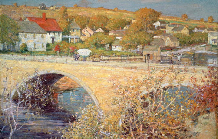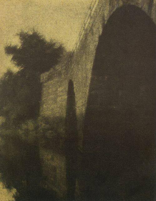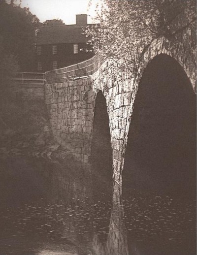 Alvin Langdon Coburn (1882-1966) was a friend of Arthur Wesley Dow, who owned the Howard House on Turkey Shore Road, and created the photogravure below, titled “The Bridge.” The photo shows tidal discoloration in the lower section, and how the bridge flares out at the end. The arches are the same size but appear different because of the photographer’s perspective.