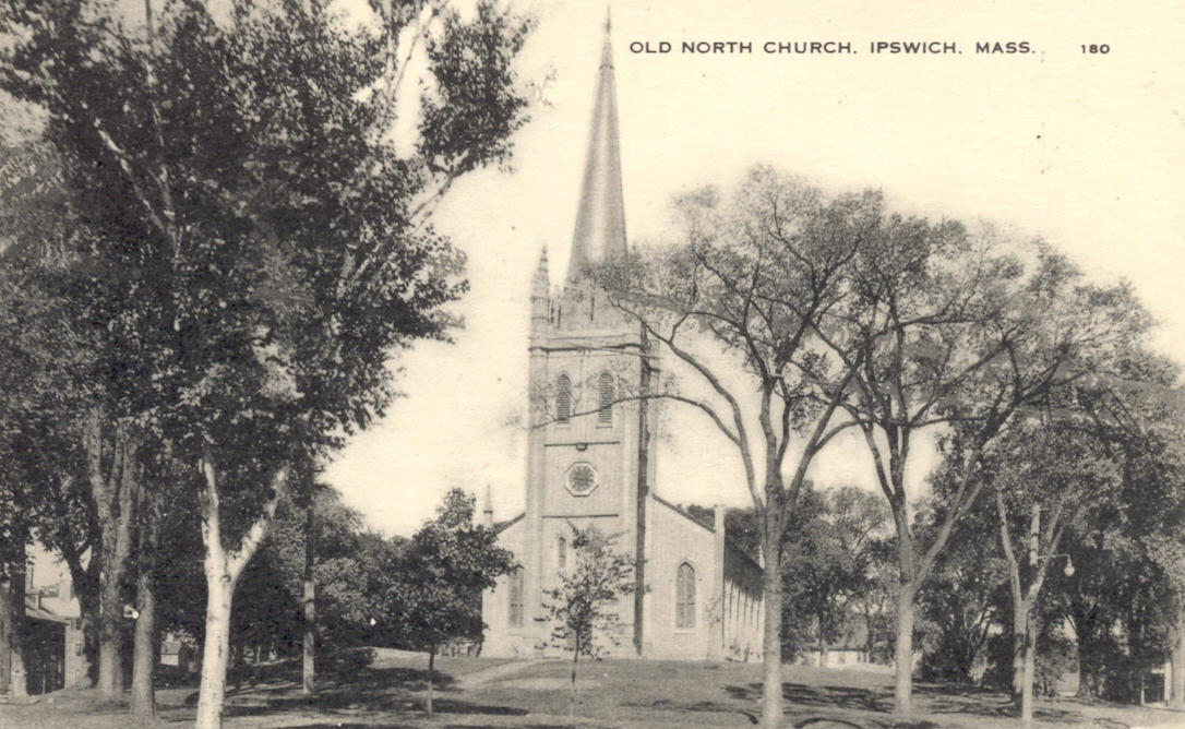 “About midway between Salem and the ancient town of Newburyport, the traveler on the Eastern Railroad sees on the right, between him and the sea, a tall church spire rising above a semicircle of brown roofs and venerable elms, to which a long scalloping range of hills, sweeping off to the seaside, forms a green background.