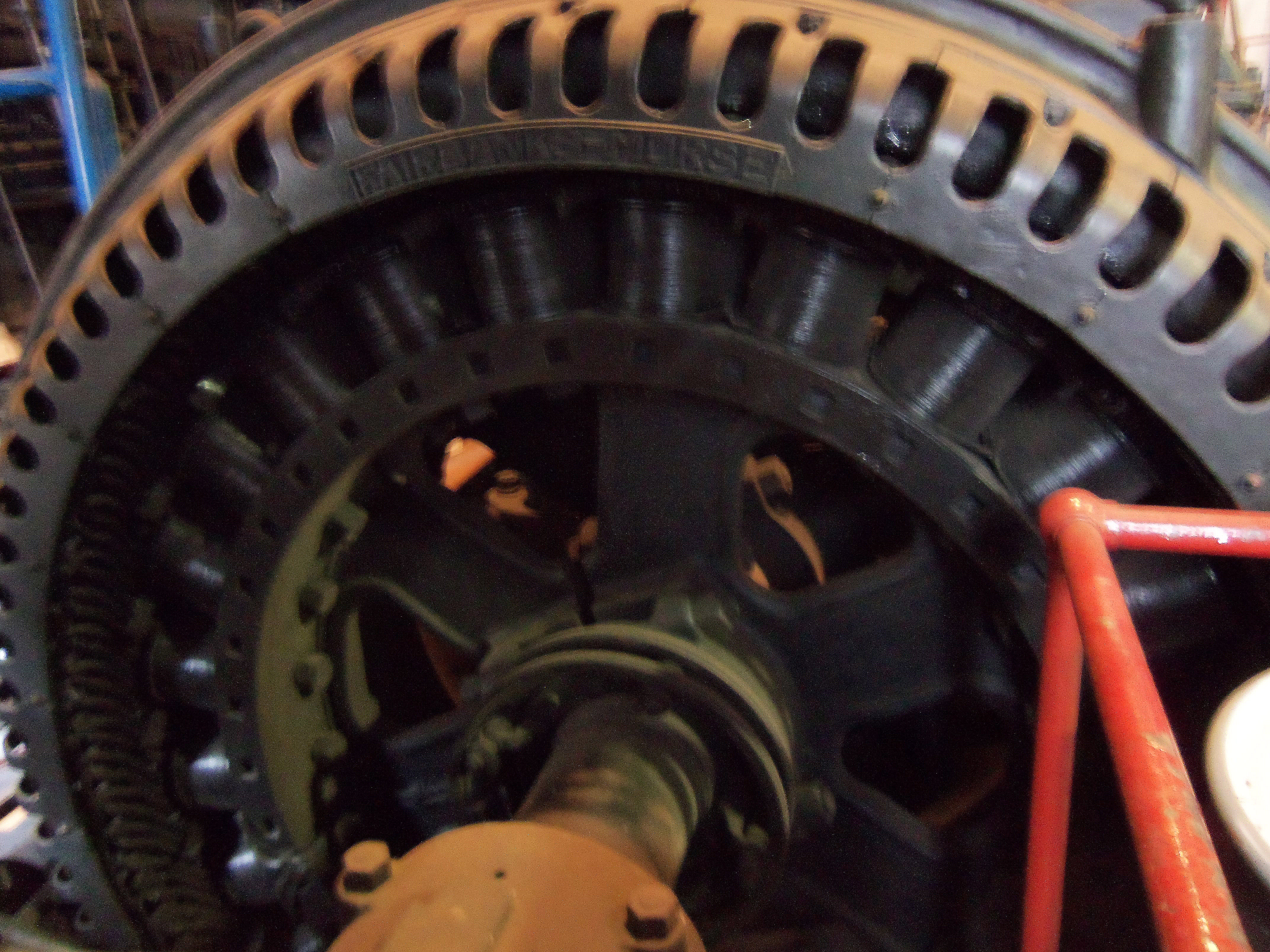 Photos below are from my visit to the Municipal power station in November 2016. The red, white, and blue turbines are “newer.” The dark older ones date to the 1930s, fail emissions, and are used only in case of emergencies. The turbines are all diesel, and some of the newer ones can burn gas as well. The original turbines were steam and drew water from the reservoir behind the building.