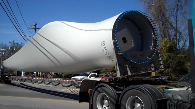 Ipswich Utilities posted the videos below showing a single turbine blade of one of the town’s wind turbines being driven through Lord’s Square and installed.