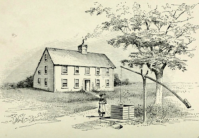 Deacon William Goodhue was given land in more than one location in Ipswich, including a location on County Rd., which he sold to Nathaniel Rust in 1665. He also received property a mile upriver from town, where he apparently built his house, and a larger property for farmland a couple of miles out of town, which became part of the Winthrop estate, both on Topsfield Road. In 1688, Deacon William Goodhue summoned his son Joseph to move from his Chebacco house (now Essex) to live in Deacon William’s House in Ipswich, and “Act on his behalf.” Deacon William then retired to live with his other son, William, in Chebacco Parish.