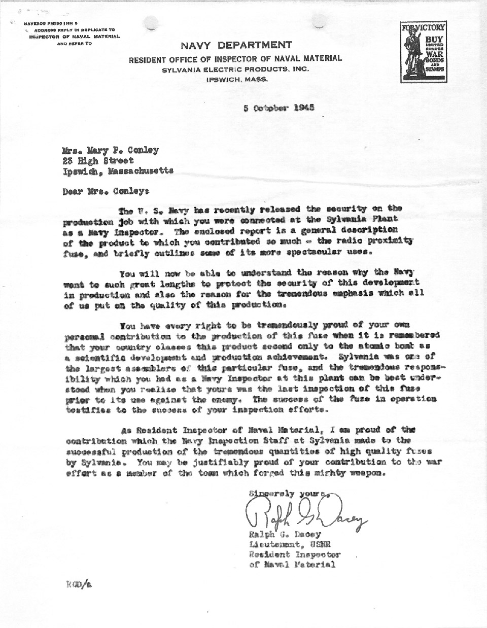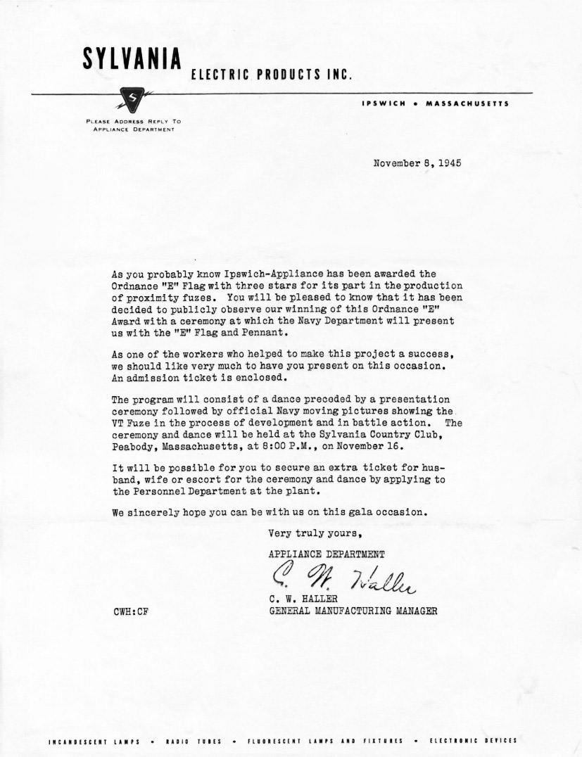My grandfather, Henry Trask Cowles, worked at the Sylvania plant in Ipswich after he retired as a professor of agriculture in Mayaguez, Puerto Rico. My mother says he fixed fuzes that didn’t look right upon inspection.
