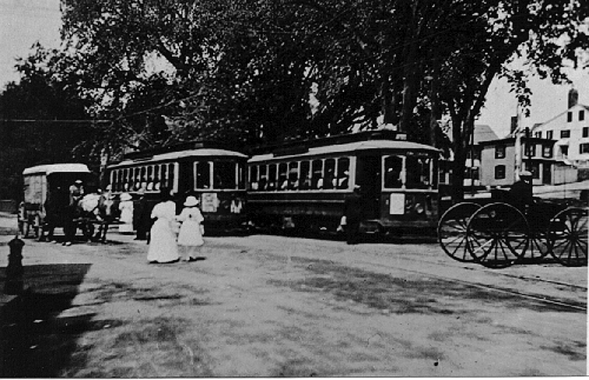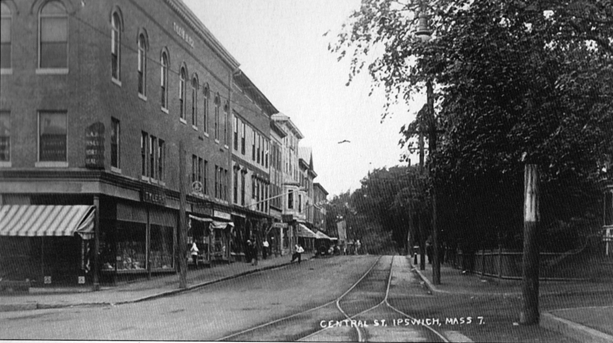 The brief era of horse-drawn trolleys apparently never materialized in Ipswich. An electric trolley line from Beverly through Hamilton to Essex and Gloucester opened in 1895, and on June 26, 1896, the first car on the branch that followed Candlewood Road to Ipswich arrived in town, greeted by a large crowd at Market Square. On that day, hundreds of people took advantage of the free ride to Essex Junction, some enjoying it as many as three times!