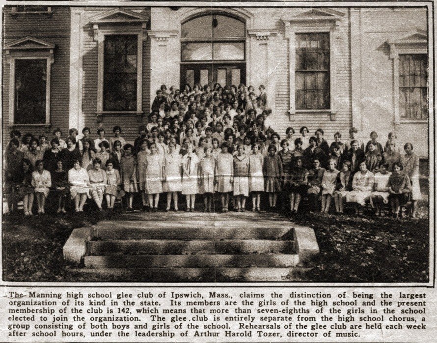 The following are excerpts from The History of the Ipswich Public Schools, written in 2008 by William E. Waitt, Jr, who served as teacher and principal in the Ipswich Public Schools for 36 years; and A History of the Ipswich Free Schools by Thomas Franklin Waters. Photos are from the Historic Ipswich site.