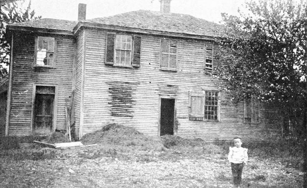 In 1704, the Town built a Town House “with a school-house under it,” near the great ledge on Meeting House Hill with the help of the County. The town meeting voted on a resolution that specified a building about 32 feet long, 28 feet wide, and 18 or 19 feet tall “with a flat roof raised about 5 feet” It was located on the grass plot in front of the Methodist church, close to a huge ledge that reached nearly to its eaves, which was blasted away many years ago. A schoolroom was provided in the lower story, and the Courtroom occupied the upper floor. The school continued in this location until 1794.
