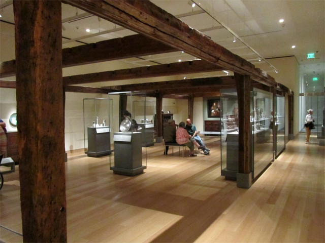 The framework is now displayed on the first floor of the “Art of the America’s” wing of the museum. Shown below is the summer beam from the Manning house, with its floor beams attached.