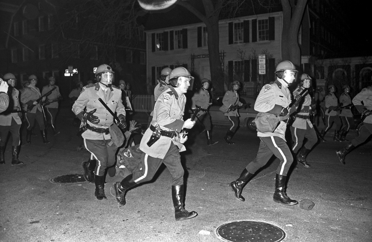 On October 16, 1967, over 5,000 opponents of the Vietnam War rallied on Boston Common and marched to the the Arlington Street Church. At the end of a service broadcast to the crowd, over 280 men turned in or burned their draft cards. On January 5, 1968, indictments were handed down to Yale Chaplain William Sloane Coffin, Dr. Benjamin Spock, Marcus Raskin, Mitchell Goodman and Michael Ferber for conspiring to “counsel, aid, and abet Selective Service registrants to evade military service and refuse to carry draft cards.” All five were signers of A Call to Resist Illegitimate Authority and members of the anti-war collective RESIST. The judge disallowed testimony about the illegality of the war and the draft; the “Boston Five” were found guilty and sentenced to prison. Their convictions were overturned by an appeals court a year later. (Read more at Mass Moments.)