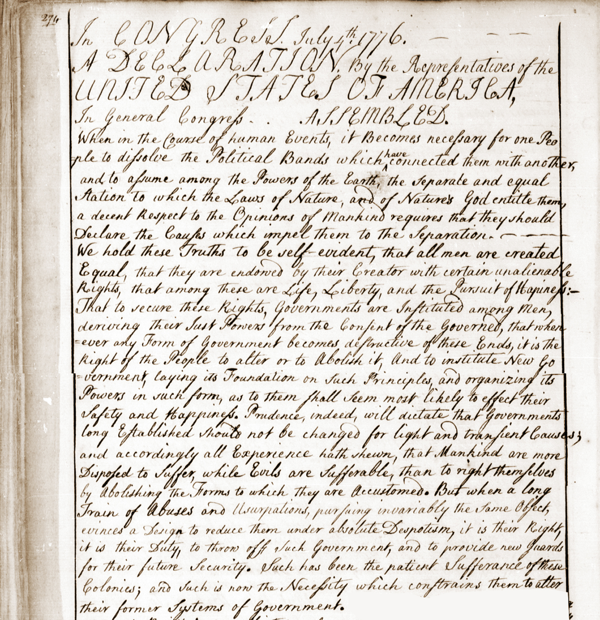 In Philadelphia, the Continental Congress adopted the Declaration of Independence on 4 July 1776, and published it the following day. Express riders carried copies of the first printing of the Declaration to Boston, arriving on July 15. A Salem newspaper, the American Gazette, published the Declaration of Independence on the 16th. The full Declaration of Independence was entered into the town record by Ipswich, MA, town clerk John Baker. The full handwritten original in the Town Records 1738-79, Box 9, page 274 at the Ipswich Town Clerk’s site.
