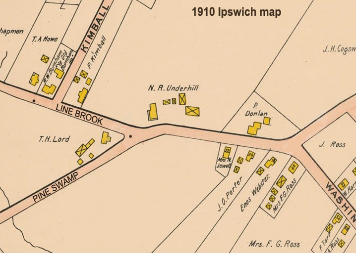 In the 19th and 20th centuries, the intersection was sometimes called “Lord’s Corner.” The last private owners of the land were William F. “Willie” Ellsworth and Hannah Ellsworth, who inherited the Lord farm, although it is unclear if they lived on the property. Mr. Ellsworth, also a farmer, was a descendant of Wilbur Fiske Ellsworth, who was born in Ipswich on March 30, 1843, and served for many years with the Ipswich fire department. He was the fourth son of Benjamin N. Ellsworth, the esteemed Ipswich lightkeeper, and was the brother of Civil War hero Thomas Ellsworth.