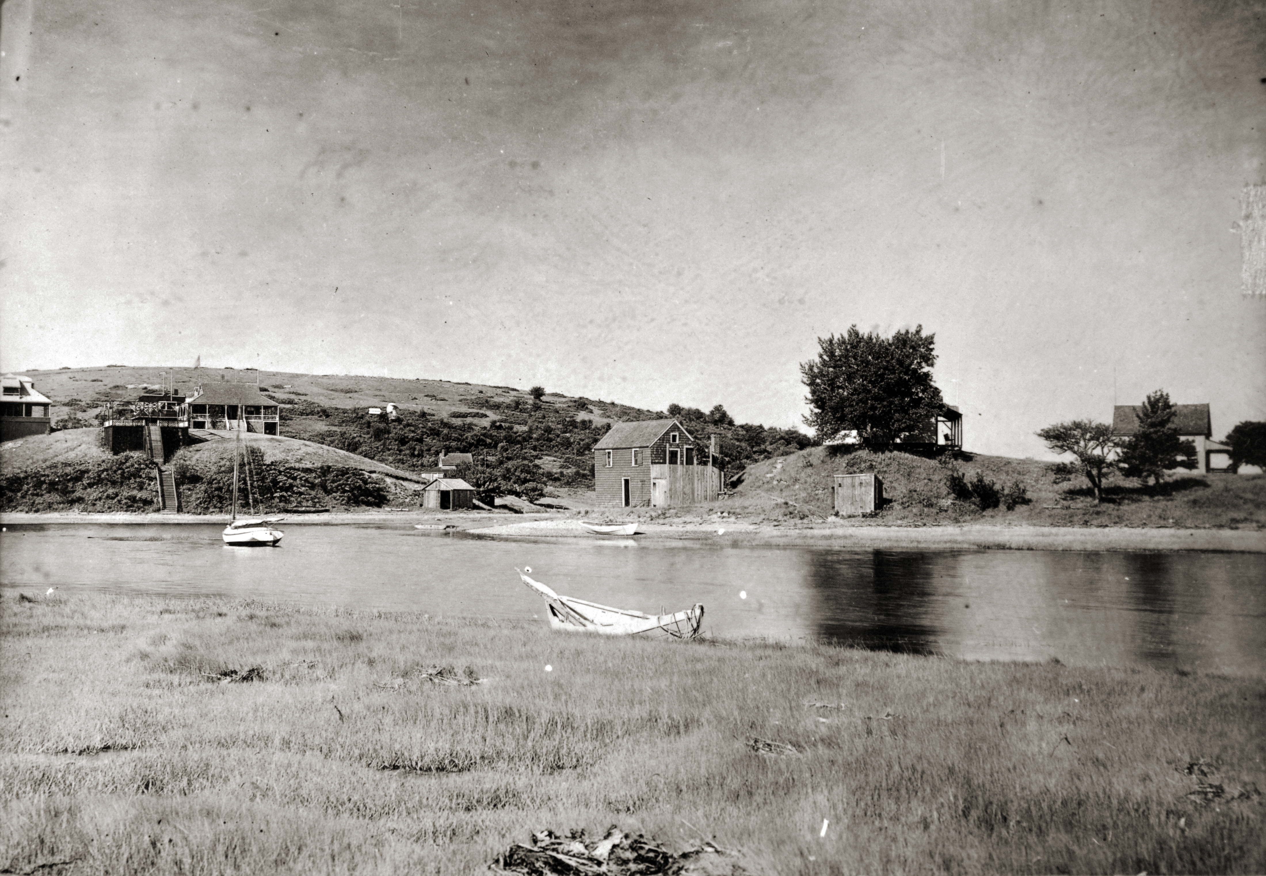 The Carlotta had an elevated walk over the cove so that passengers could get to the river on a low tide. Fishermen maintained a small wharf on the cove’s north side and, on the Agawam side, Jim Hull had a spot where he transacted business with the diggers.