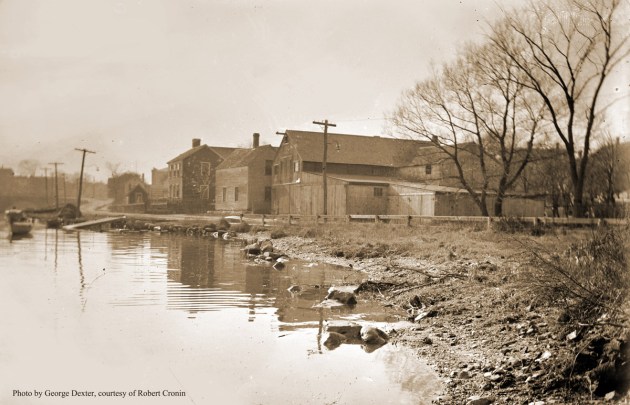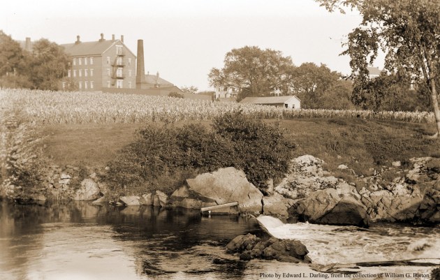 Continuing his imaginary sail, Barton guides us under the Choate and County Street bridges, and over the dam that once furnished water power for Damon’s grist mill, later Carter’s.