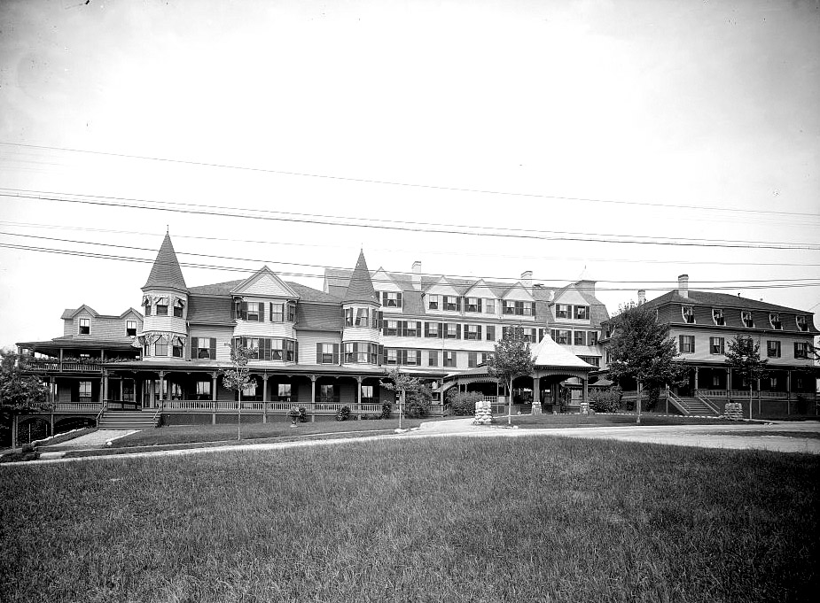 The comment regarding the Rockaway is not quite accurate. As near as we can tell, the images you show are of the original Hotel and the original annex. We believe the original annex was torn down in 1905 to create the new annex which does still exists as condominiums today. The gabled roofline was build to mimic the hotel’s gabled roofline. The Hotel itself partially burned down, was rebuilt and then was torn down and used to sit in the area now occupied by the newer condo Townhouse’s driveway.
