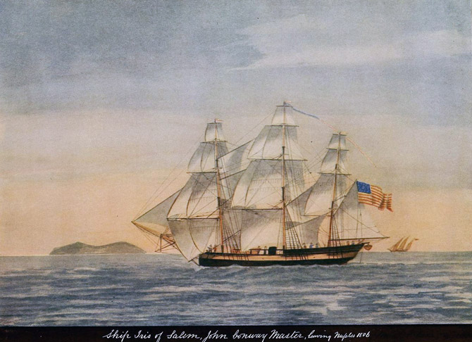 The ship “Iris,” 227 tons burden, was built in Kennebunk, Maine, in 1797 for William Gray, Jr., of Salem, one of the most distinguished merchants of his time, and one of the largest ship-owners in Salem. In 1807, Mr. Gray owned fifteen ships, seven barks, thirteen brigs, and one schooner, being one-fourth of all the tonnage of Salem.