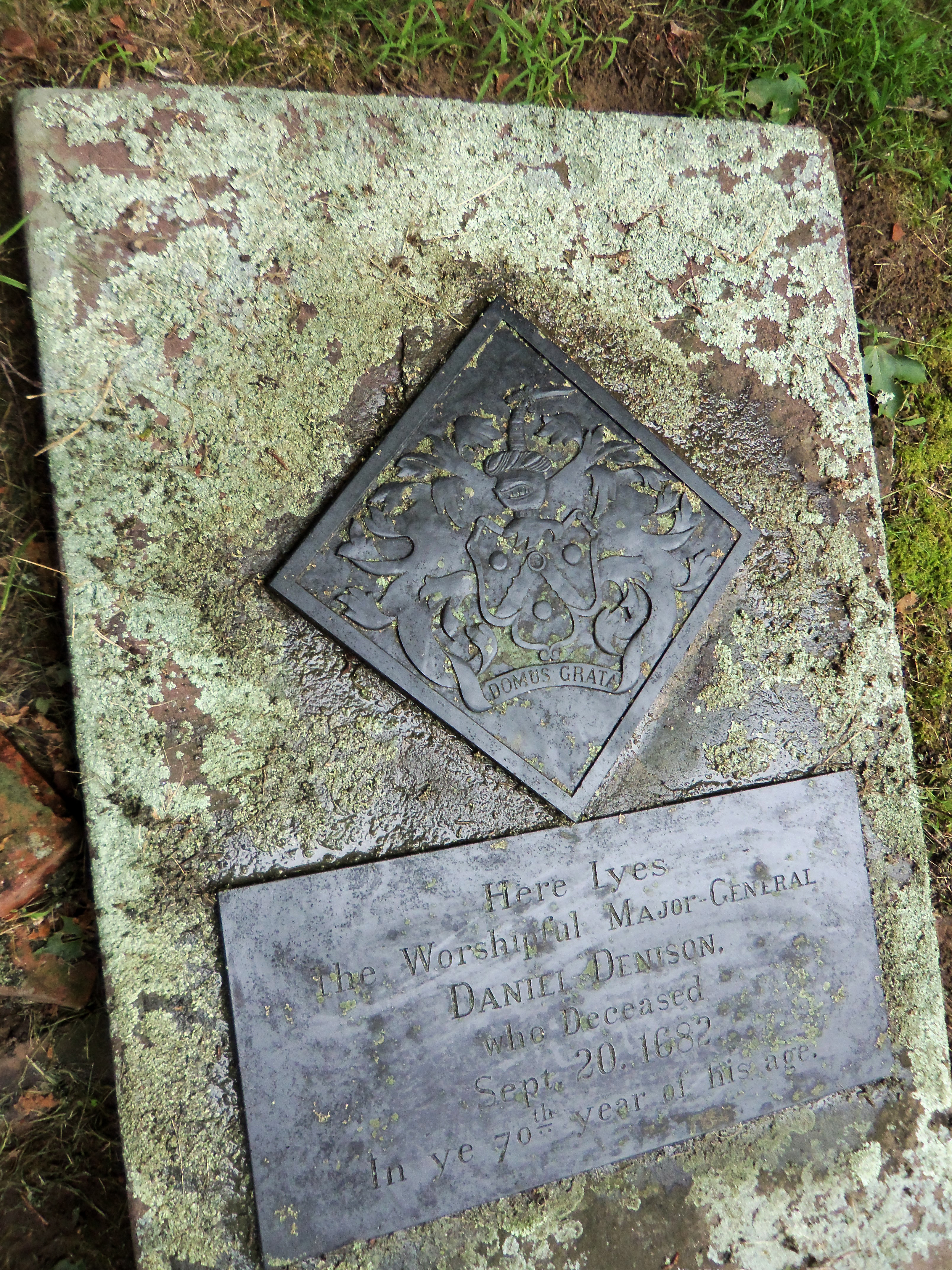Daniel Denison was born in Bishop’s Stortford, Hertfordshire, England, in 1612, and came to America with his parents, William Denison and Margaret Chandler, on the ship “Lyon” in 1631. When Denison arrived with his young bride in the new settlement in 1634-35, then twenty-three years old, he received the grant of a two-acre lot, adjoining John Fawn’s, which extended to Union Street toward the Mill. In 1635, he had already built his house, but within two years had constructed a larger home behind the Meeting House on the hill. Thomas Franklin Waters indicated that the General’s estate extended up Green Street from the empty corner at the intersection with County St.
