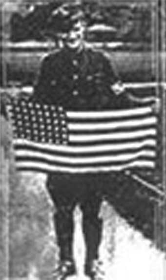 On April 9, 1917, Easter Monday, in the Battle of Arras, he went over the top at 5.45 a.m. at Vimy Ridge with a small American flag attached to his bayonet. On April 13, having secured their objective, the men dug in. A heavy German shell buried Gunner Clancy under masses of earth, which crushed him painfully. The flag episode, recognized as the first appearance of the American flag in action, brought the wounded gunner to wide notoriety. He left Germany on Feb. 7, 1919, and returned to Ipswich the following May. He was given a permanent appointment as a patrolman on the Boston police force, and on the night of January 22, while doing duty in Charlestown. was shot and instantly killed. The remains of the patrolman were brought to Ipswich, and on Sunday, January 24, he was buried here with full military honors.