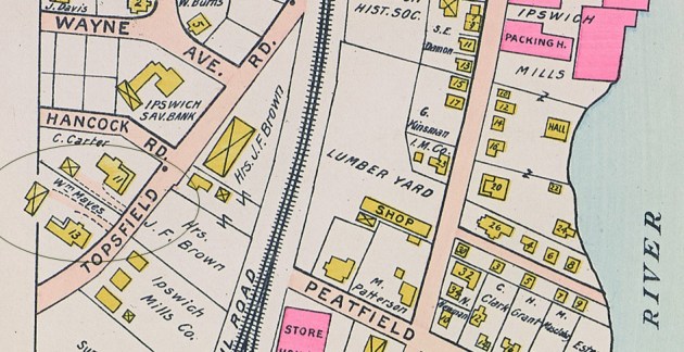 The William Hayes House at 13 Topsfield Rd. is circled in this excerpt from the 1910 Ipswich map.