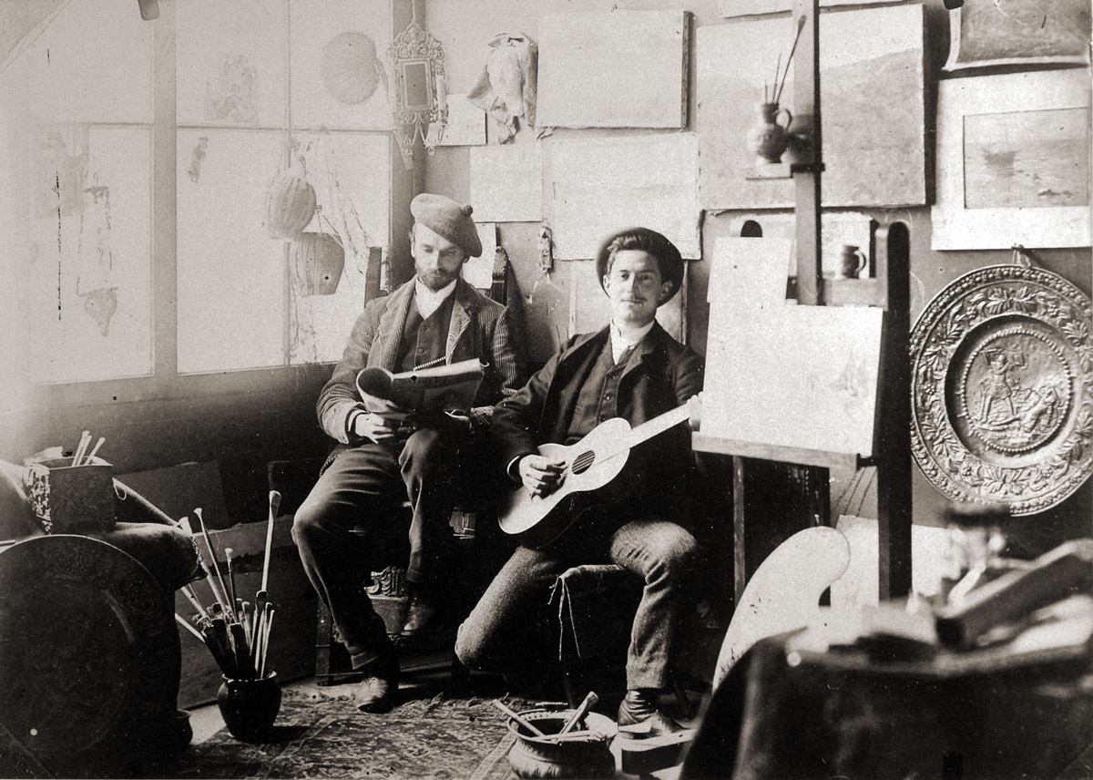 Arthur Wesley Dow in his Studio at the top of Spring Street, with his friend Henry Rodman Kenyon on the right.